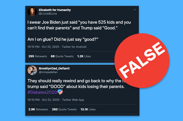 No, Trump Didn't Say "Good" In Response To A Question About Kids Separated From Their Parents At The Border A clip from the debate shows that the president said "go ahead" to the moderator. View Entire Post › October 22, 2020 Labels: News Share to: Twitter Facebook URL Print Email